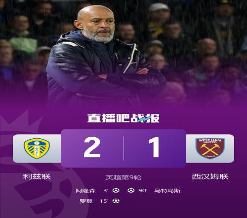 英超第九轮,西汉姆客场1-2不敌利兹联。努诺执教西汉姆后遭遇三连败,1平3负仍未取得首胜。